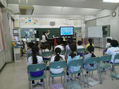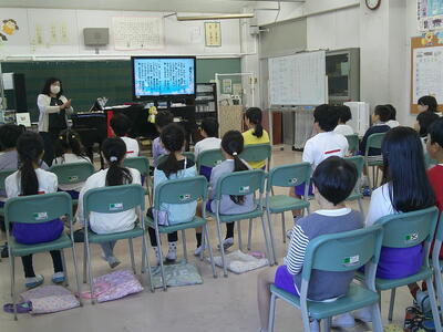 歌詞を見ながら音の強弱について学び、意識して歌の練習を行いました。