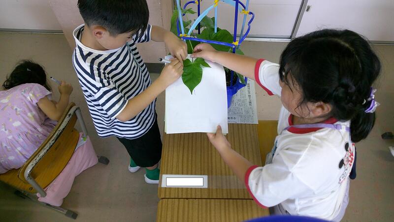 子供たちは、葉っぱの大きさやぐんぐん伸びた蔓の長さに、子供たちは大喜びです。