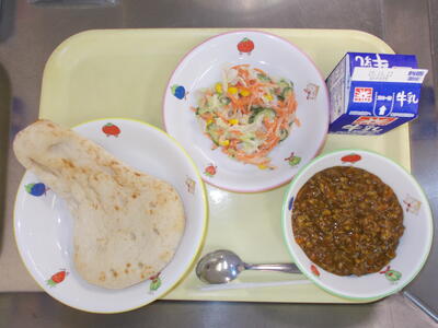 今日の給食は図書万博にちなんだ世界の料理「インド」でした。