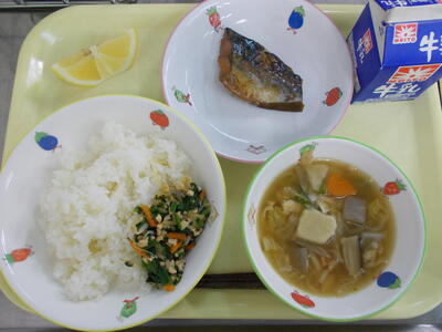 サバ・生姜・豚汁など旬なもので体が温まる給食を準備しました。