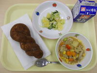 あぶ玉丼はある食材の頭文字をとってついた料理です。どんな食材かわかりますか?実は、あぶたまには「あぶらあげ」「ぶたにく」「たまねぎ」「たまご」の4つの食材がかくれています。今日は油揚げ・豚肉などの食材をかつおだしで煮てたまごでふんわりととじました。丼ものはついよく噛まずに食べがちです。ひとくち30回を意識してよくかんで味わっていただきましょう!9/29(木)の給食
