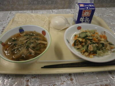 今日で本年度の給食が最後です。メニューは親子丼で、食缶の中は空っぽでした。栄養士の先生、調理員の皆さん、一年間ありがとうございました。