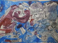 【2年】絵の具を使っていろいろな塗り方で描いています。発想がユニークです。