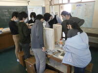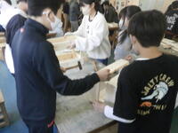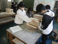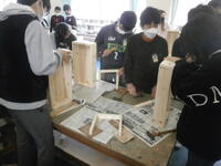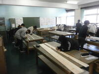 図工室で奉仕作業に取り組んでいます。木を切って丁寧に紙やすりをかけ、組み立てていきます。何ができるかお楽しみに!