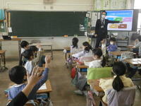 市川市少年センターの先生を講師に迎え、今日は5年生でインターネットトラブル防止教室を行いました。昨日の2年生よりも、実際にSNS等使用している子も多いとみえて真剣に話を聞いています。
