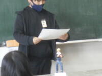 こちらのクラスでは、英語の時間に出来上がった作品について英語でスピーチをしています。
