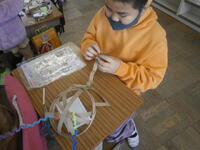 【4年 図工】それぞれ工夫して帽子、王冠やカゴなどアイデアあふれる作品を作っています。