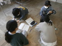 人形劇脚本『木竜うるし』をト書きを意識しながら、グループごとに台詞読みの練習をしています。