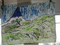 刷り上がった版画に絵の具で着色しました。