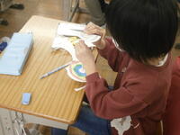 【3年】光を透かしてステンドグラスのようにきれいです。