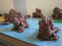 粘土で未来の自分の姿を想像しながら制作しています。夢や希望を大きく実らせましょう!