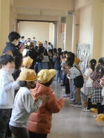 明日の卒業式は、在校生は参加しませんので今日が6年生徒の最後のお別れになります。1~5年生が廊下に並び、見送りを行いました。