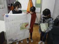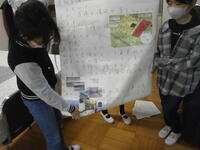 総合の授業で調べた災害について、業間休みに5年生が校長室に発表に来てくれました。大地震が来た場合に学区で危なそうな場所などよく調べてあり、感心しました。他のグループが調べた物も昇降口に掲示してあります。