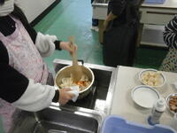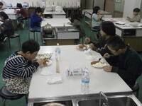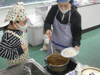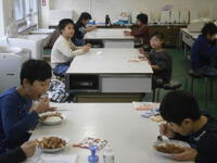 【盛り付け】                         【2,3年生も一緒に食べる】