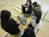国語の『おもちゃの説明書を書こう』の授業で実際におもちゃを作り、説明書が完成しました。第2音楽室でそれぞれの説明を聞き、それぞれの手作りおもちゃで遊びました。まるで縁日のようにみんなで楽しみました。