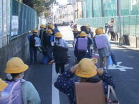 元気に校庭で凧あげに挑戦です。自分でお気に入りの絵を描いた凧が大空に舞い上がります。中には走り回って疲れてしまった子や、糸が絡まってしまった子もいましたが、皆、楽しそうでした。