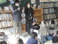 絵本サークル『ほうき星』の皆さんが、スペシャル版のDVDを作ってくれました。子どもたちは教室の大画面で視聴し、お礼の手紙を書いています。