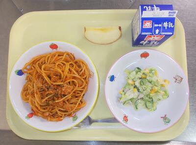※本日の献立表に「オレンジ」の記載が抜けておりました。