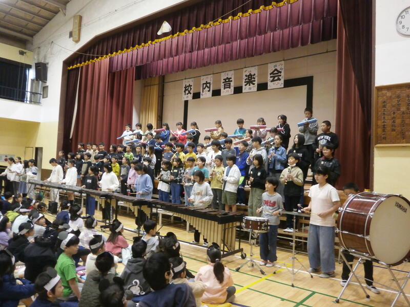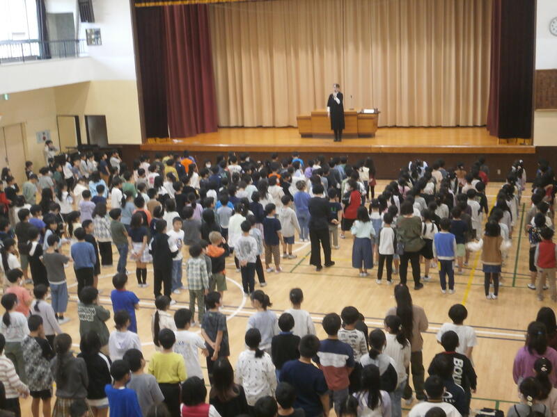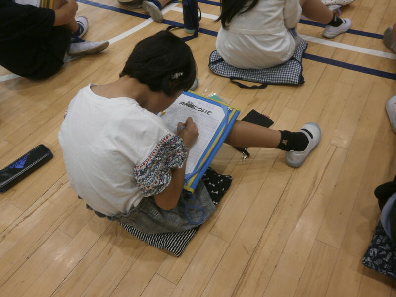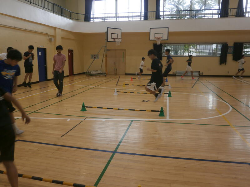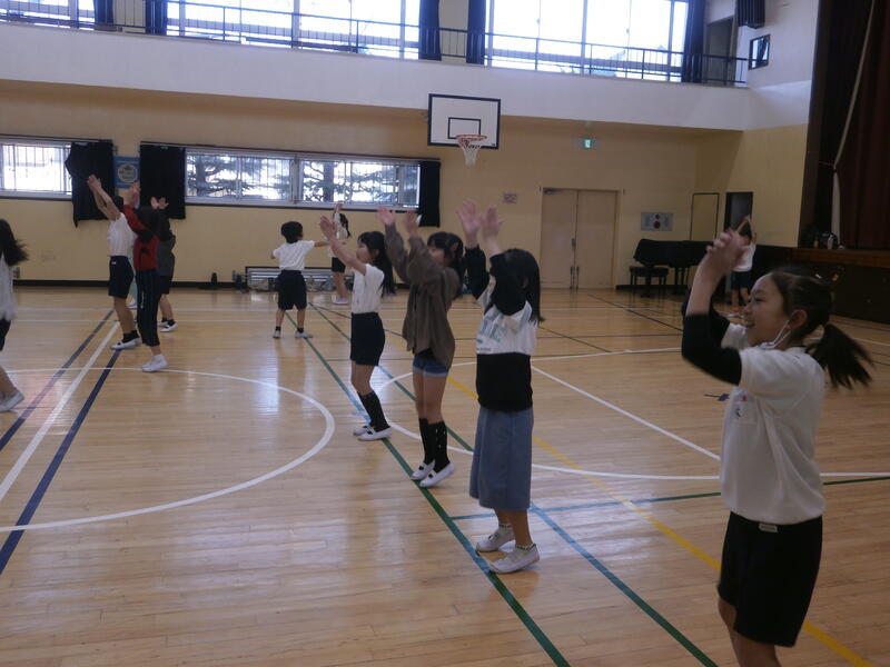 今日は朝雨が降っていたので、全種目の児童が体育館で練習をしました。