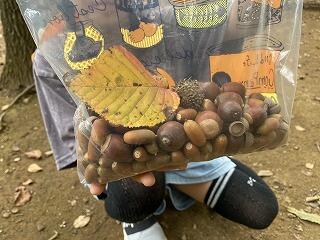 どんぐり拾いも楽しみました。袋いっぱいです。