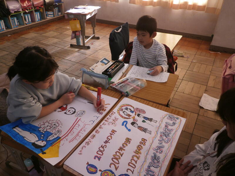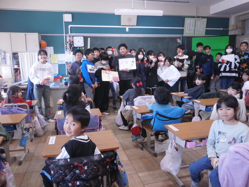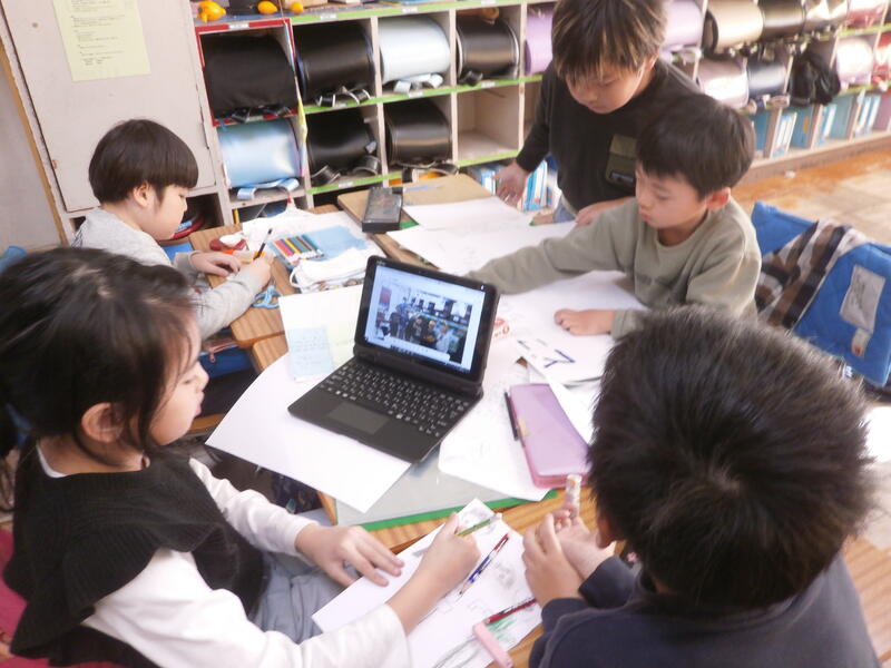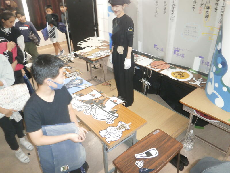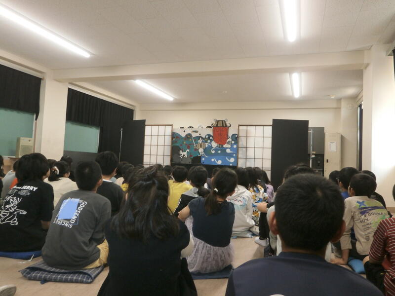 1年生の教室を訪ねると、ちょうど6年生が自作した紙芝居を