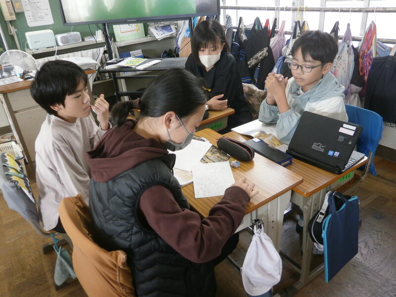 6年生、社会科の授業。歴史の学習で各自が調べて、まとめたこと