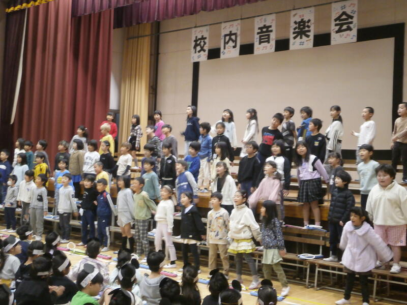 「図書委員会からのお知らせ」 「校歌斉唱」