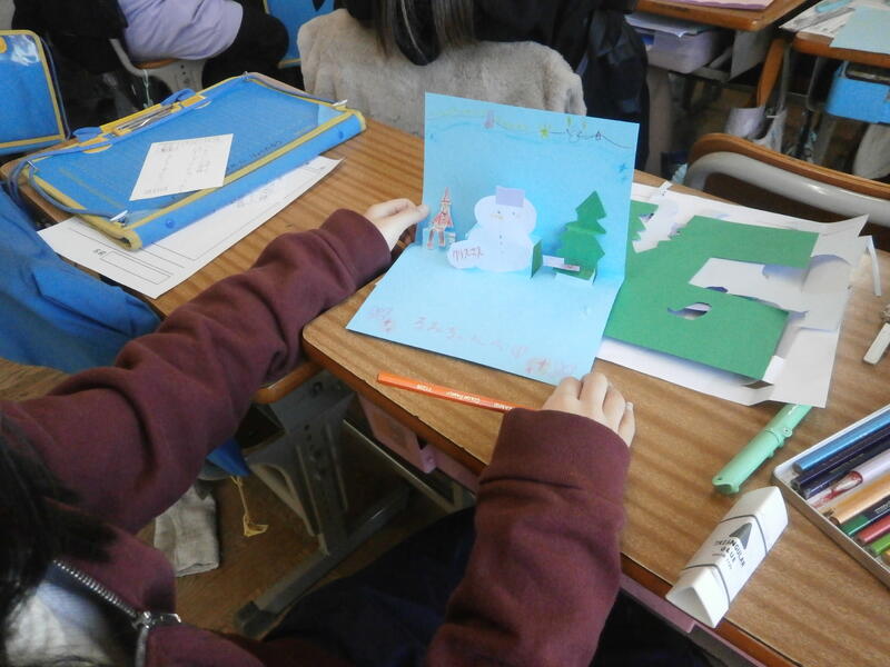 4年生、図工「とびだす!カードに思いをのせて」の授業です。