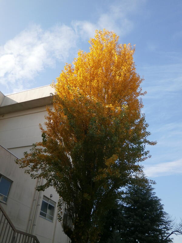 冬本番を迎えようとしていますが、校内にはまだ紅葉している木があります。