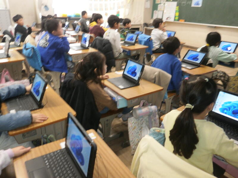 わかば学級2組の教室で、タブレットの機能「オクリンク」