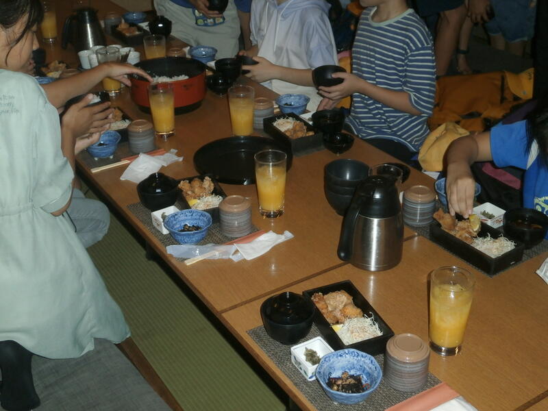 ホールでのレクを楽しみました。この後は、部屋で明日の準備をし就寝時間までそれぞれすごします。明日も早起きですが、今夜はゆっくり眠れるでしょうか…