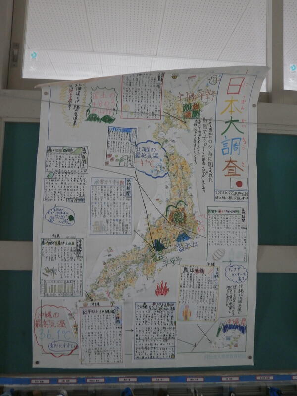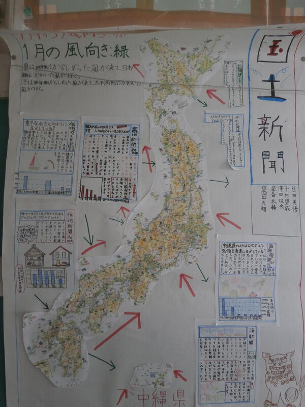 5年生の廊下に、社会科の学習をまとめた壁新聞が掲示されていました。