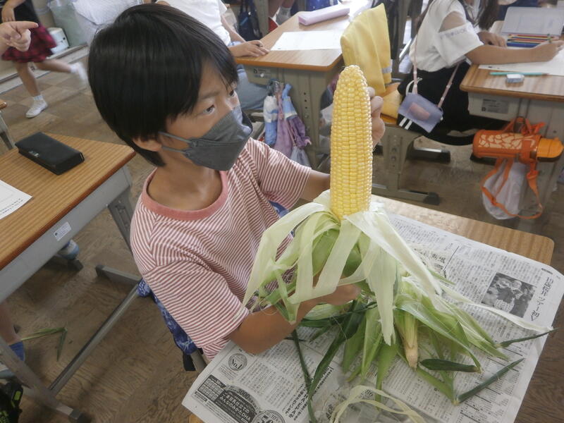2年生 トウモロコシの皮むき