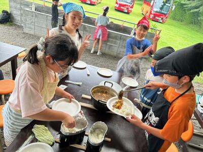 火起こしに苦戦しながらも、グループで協力してカレー作りは大成功となりました!後片付けまでばっちりです!