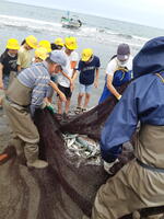 岩井海岸での地引網体験です。