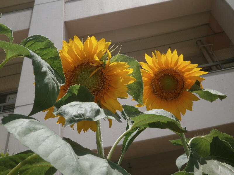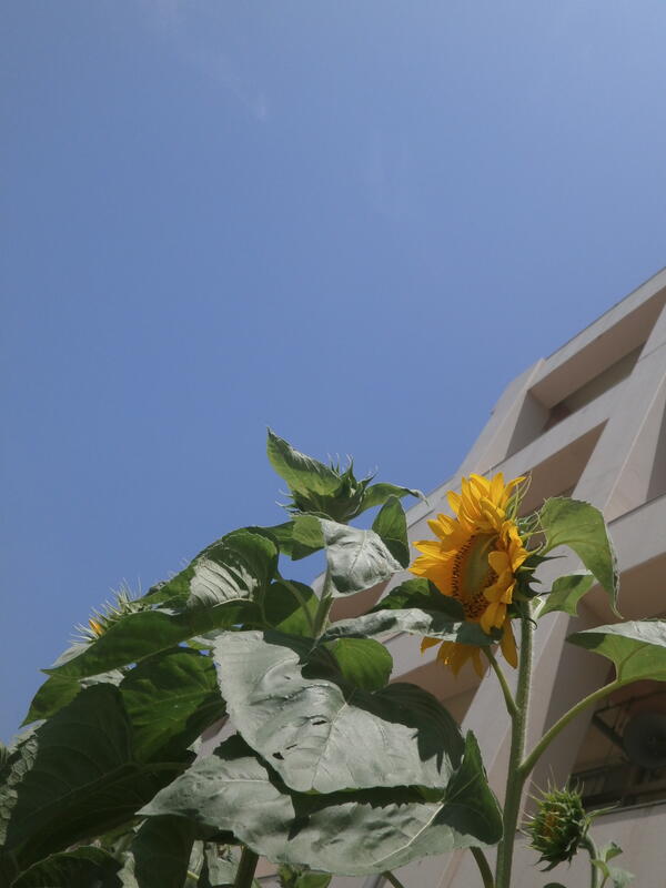 そんな中で、先日お知らせしたヒマワリが、元気よく開花しました。