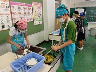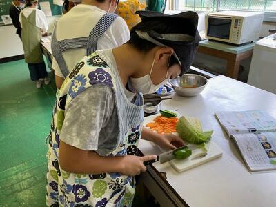 家庭科の「いためて つくろう 朝食のおかず」の学習で、調理実習を行いました。