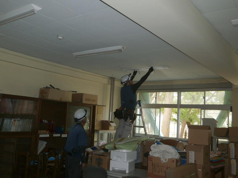 夏休みを利用して校舎内の照明を全てLEDに交換する工事がおこなわれています。