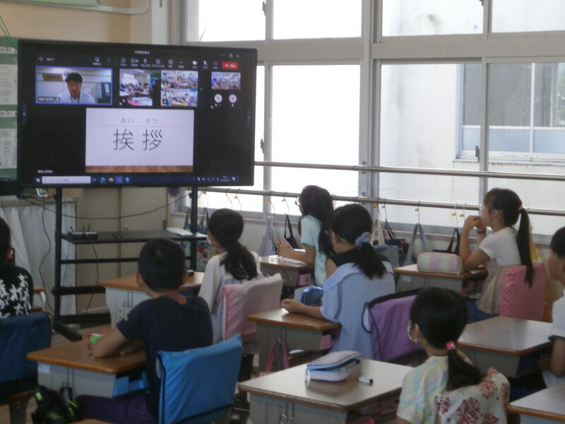 外国語の授業では、おうちの方にも質問をしていました。
