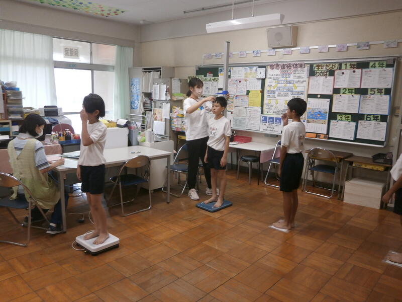 保健室では、発育測定がありました。大きくなったかな?