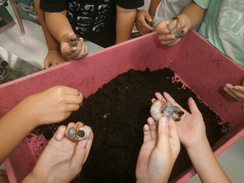 理科室で飼っていたカブトムシが、夏休み中に卵を産みました。