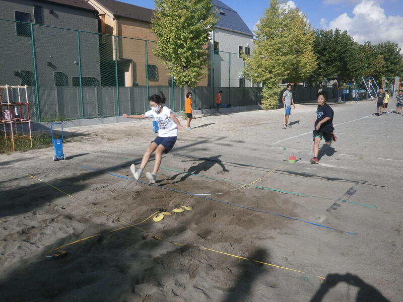 5、6年生の希望者が短距離、走り幅跳び、走り高跳びに取り組みます。