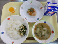 6~7月に旬を迎える千葉県の鰯は「入梅いわし」とも呼ばれ、脂がのって美味しいそうです。今日は、旬のいわしをから揚げにして、レモンをつかったさっぱりしたソースをかけていただきます。鰯には頭の働きを刺激するよい栄養がつまっています。よくかんで味わっていただきましょう!