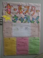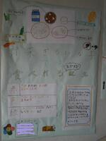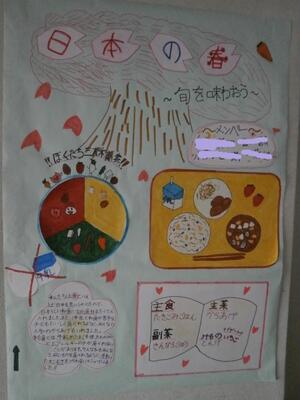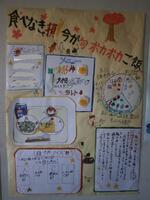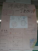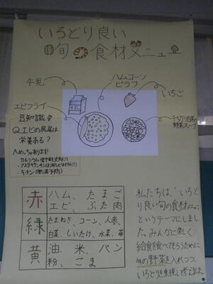 班ごとに考えた給食のメニューを壁新聞にしてまとめました。