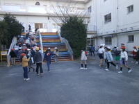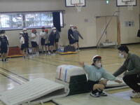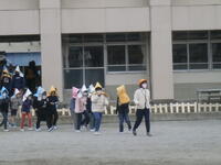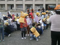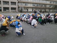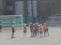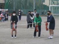 業間休み時間に避難訓練を実施しました。抜き打ちの訓練で校庭や教室、それぞれ居た場所から校庭へ避難しました。また、学校を代表して6年生6名が水消火器を使っての消火訓練に参加してくれました。