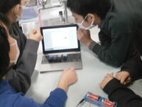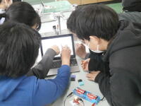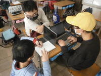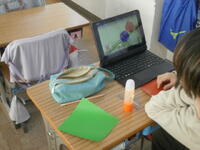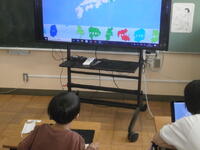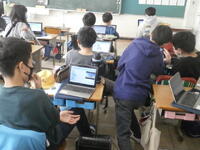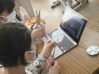 ICT支援員の先生に教わりながら、チームスの使い方を練習しています。1年生にとっては新しい発見も多く、驚きと操作できた時の喜びでいっぱいです。