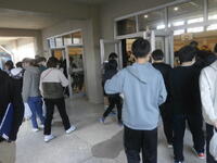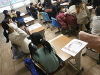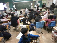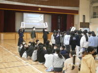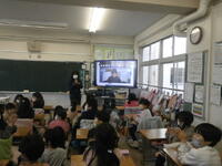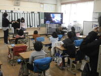 2月の朝会をオンラインで行いました。学校長の話に続いて、安全主任の先生から避難訓練についてと図書委員会の先生から百人一首大会の結果発表がありました。先生からの呼び掛けに画面に向かって答えたり、表彰チームのいるクラスでは拍手が沸き上がるなどオンラインならではの効果もありました。