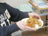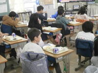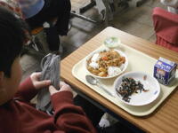 2月の給食には、揚げパンや焼き肉サラダなど子どもたちからのリクエストメニューがたくさん予定されています。今日はその第一弾、ダントツ人気のカレーライスです。おかわりじゃんけんも白熱し、食缶の中はからっぽでした。