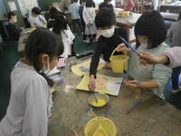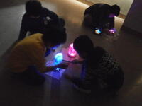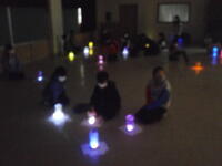 以前紹介したペットボトルなどを利用して図工の時間に作ったランプが完成しました。視聴覚室を暗くして鑑賞会です。幻想的な光に思わずうっとりです。作品をタブレットで撮影したり、天井に移った光で影絵を楽しむ姿もありました。