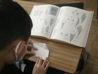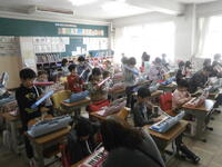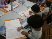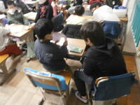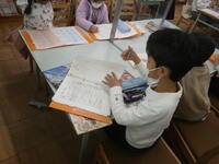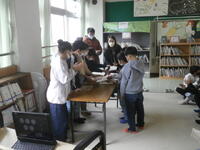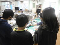 5年生が総合科の授業で鶴指小で『洪水が起こったら・・・』について調べています。教務主任の先生に聞いたり、校長室にも取材に来て熱心にメモを取っていました。